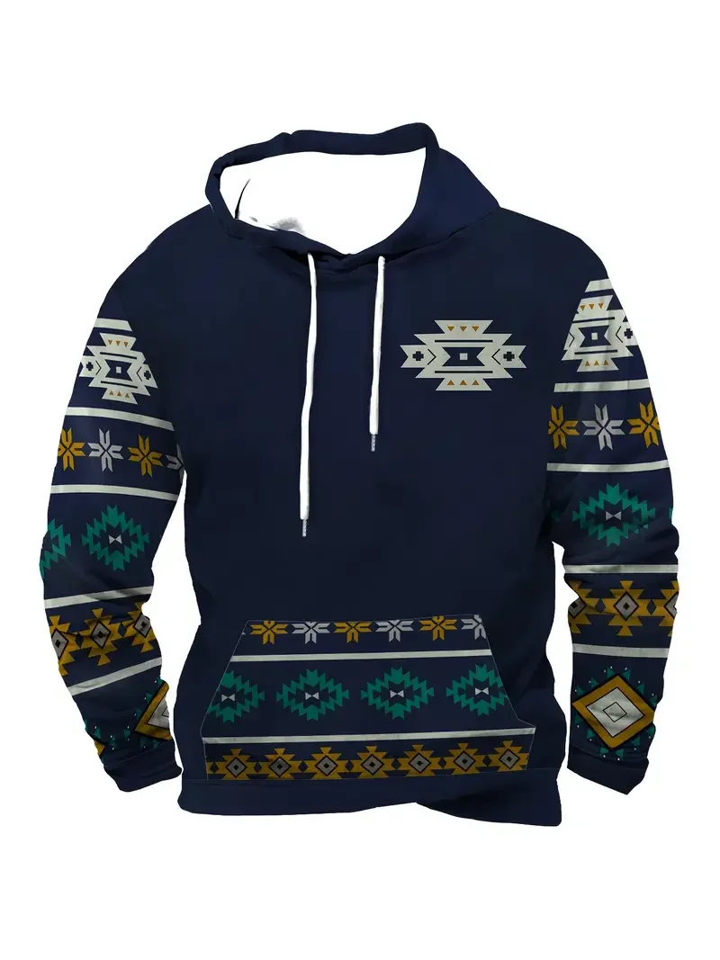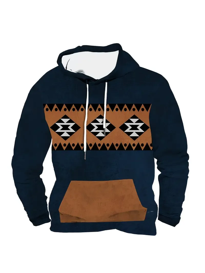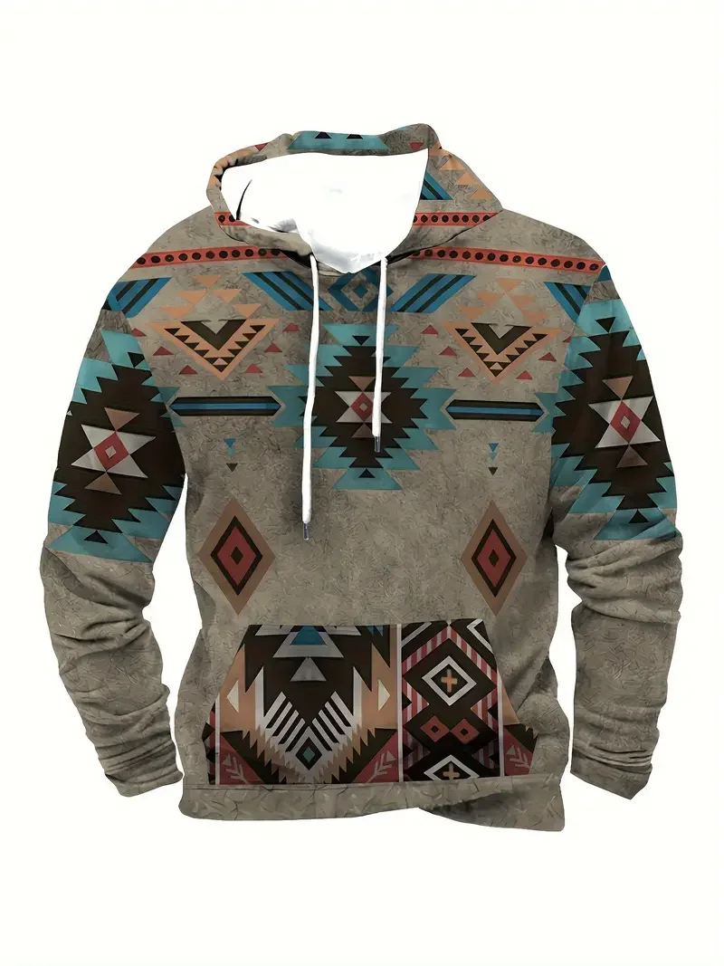 Men's Vintage Ethnic Style Geometric 3D Print Hoodie