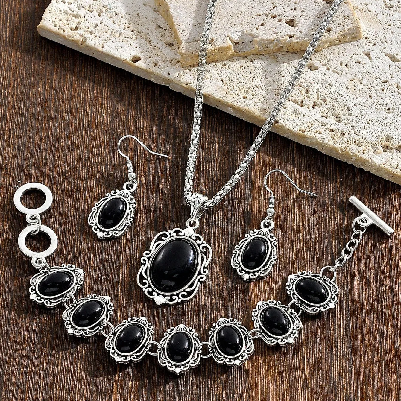 Retro temperament texture: Available in two styles: red/green/black gemstone+turtle shape, silver bottom carved with textured gemstones, including necklace, earrings, and bracelet three piece set, with a "ethnic retro" atmosphere, a complete set without worrying about matching, easily making the outfit exquisite and stylish.