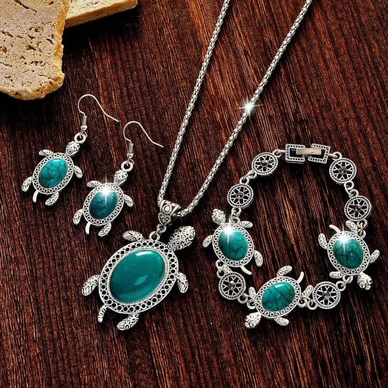 Retro turtle patterned gemstone jewelry set: the finishing touch of dressing style identification